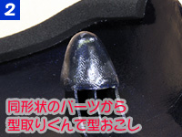 欠けて無くなってしまったバイクのカウル止めツメ部分、型取くん+プラリペアで簡単に再生することが可能です。 |